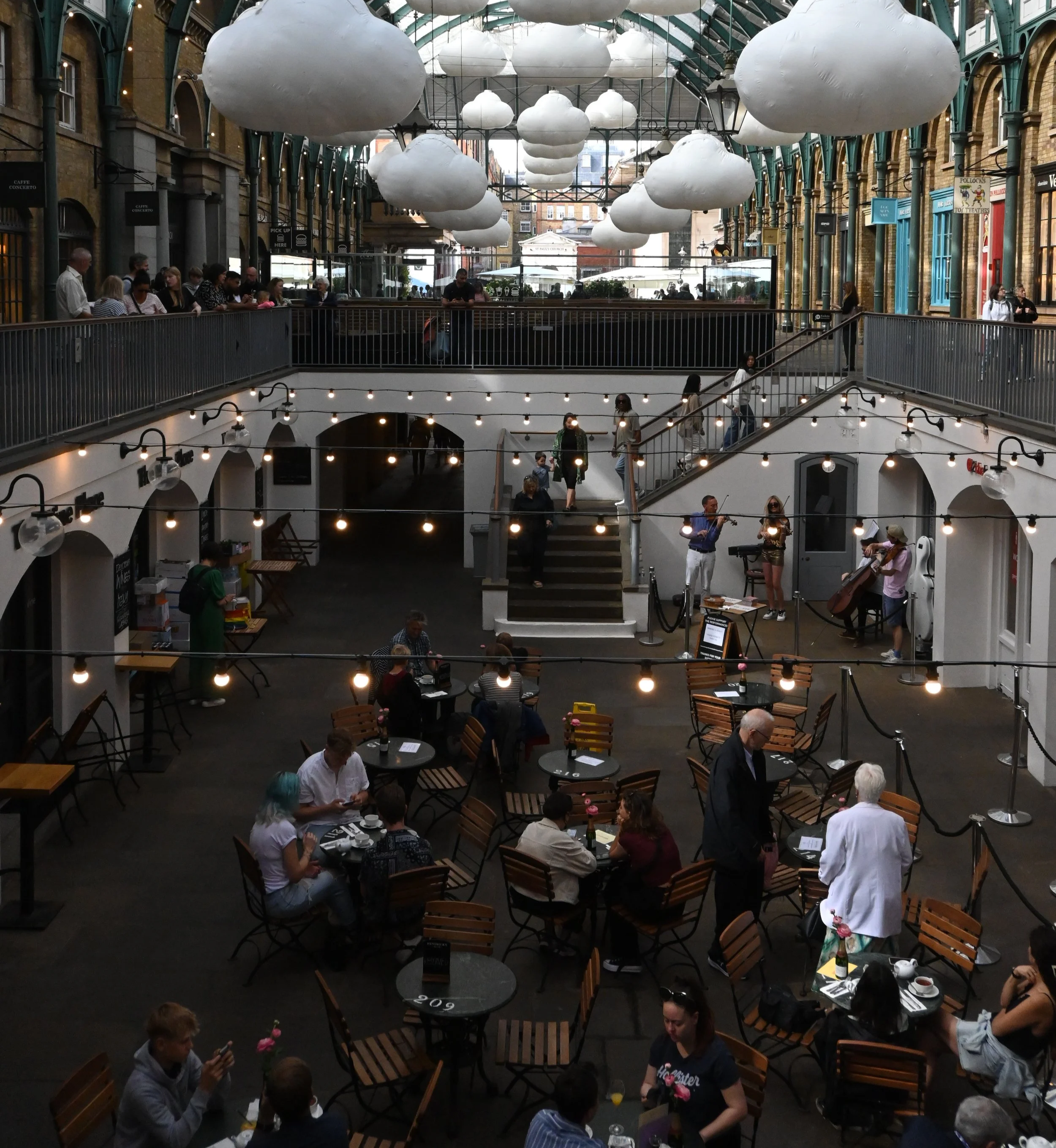 Uno dei momenti più belli è scendere al piano inferiore del mercato, dove spesso si esibiscono musicisti e artisti di strada. Le loro performance riempiono lo spazio di musica e applausi, creando una vibrazione magica che rende Covent Garden unico. È impossibile non fermarsi ad ascoltare e sorridere.